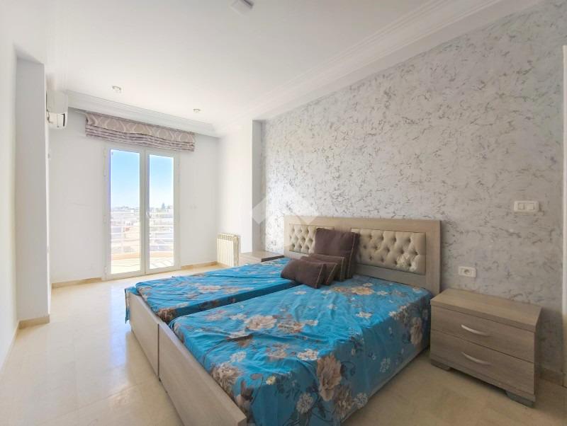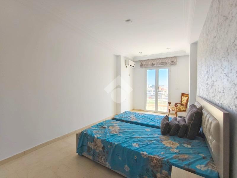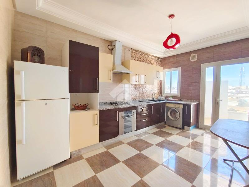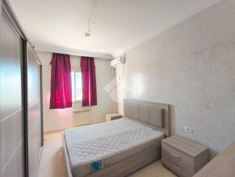 Appartement S+2 meublé, situé au deuxieme étage d’un petit immeuble de deux étages, à proximité des commodités et des moyens de transport.