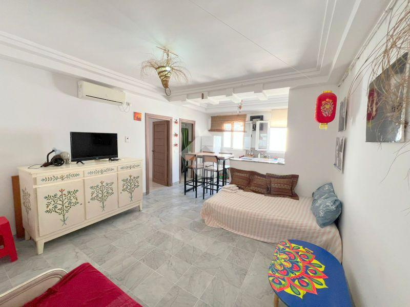 Il se compose d’un salon, d’une cuisine américaine entièrement équipée avec rangements et électroménagers.