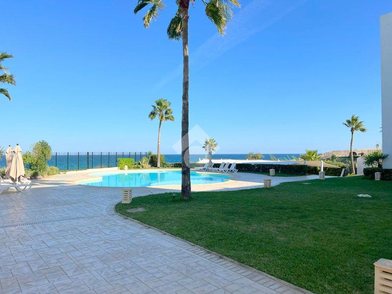 Dans une résidence pied dans l’eau avec piscine, cet appartement S+2 situé au premier étage fait partie d’une résidence front de mer composée de 24 appartements seulement.