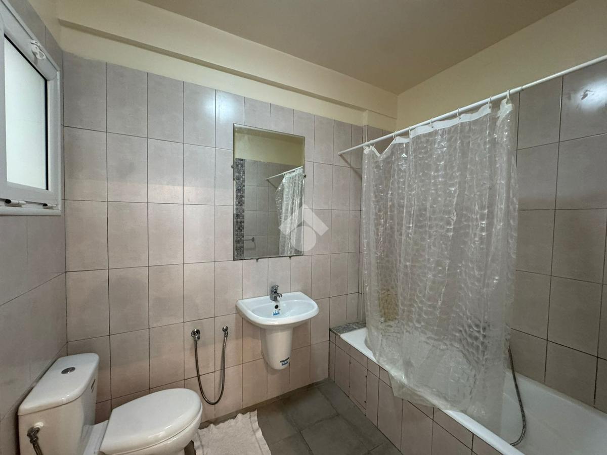 L’appartement comprend également une salle de bains avec baignoire.