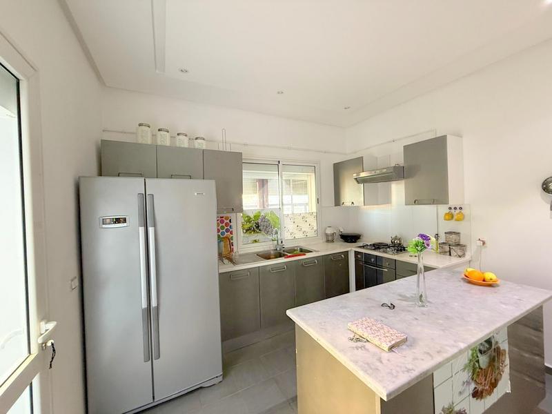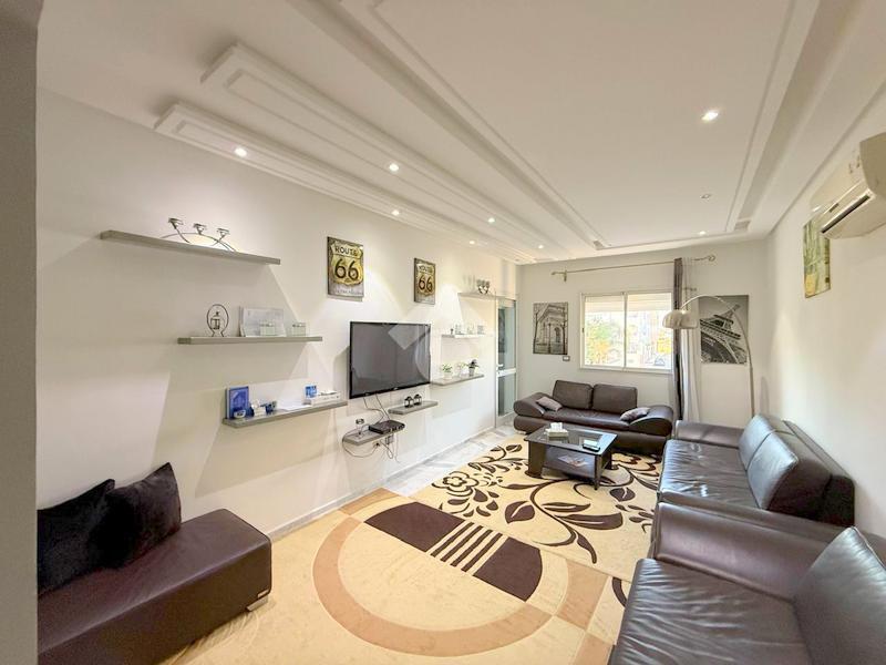 Situé au 1er étage, cet appartement S+2 bénéficie d’un emplacement calme au sein d’une résidence de type R+2, un petit immeuble agréable et bien entretenu.