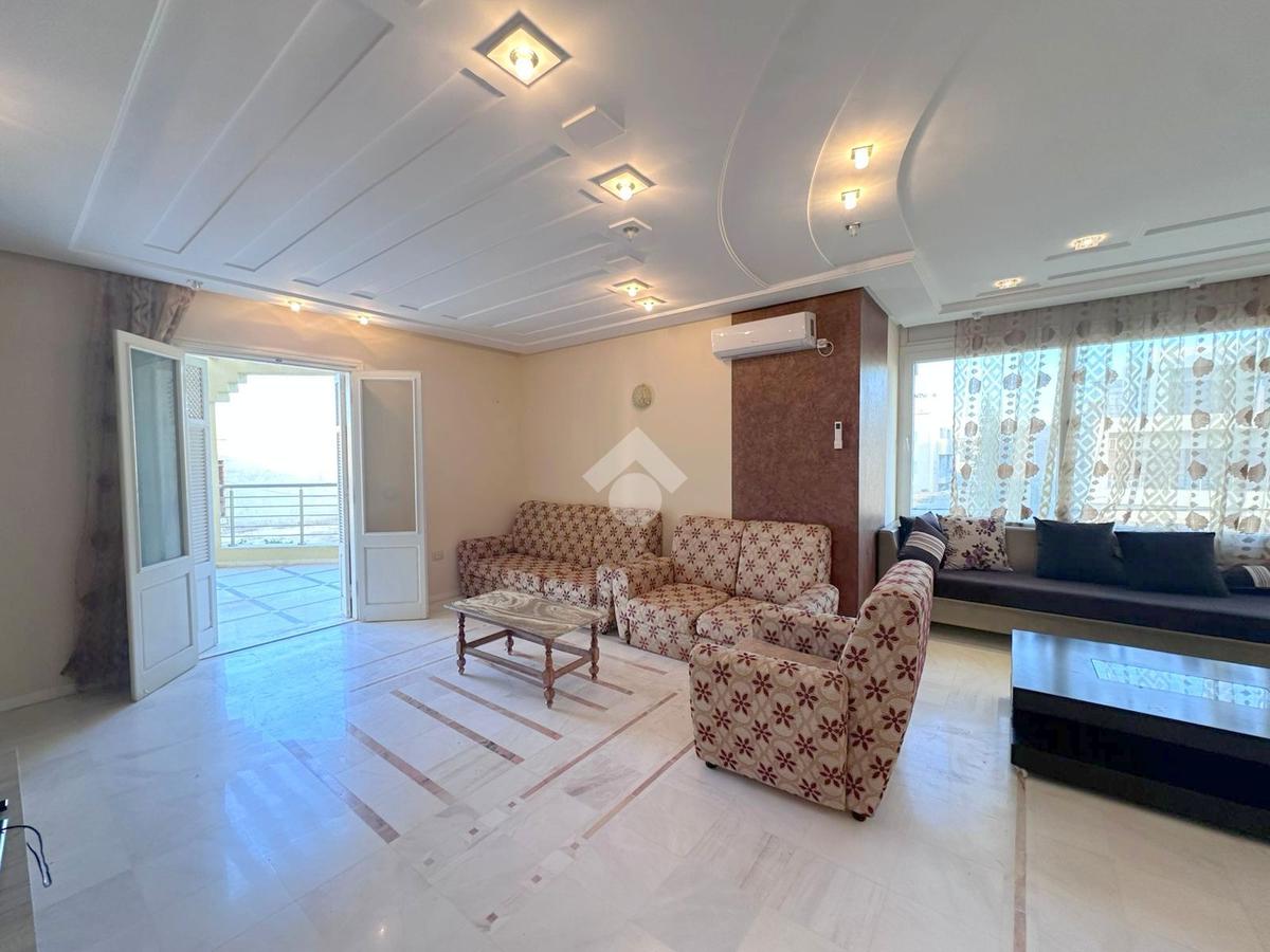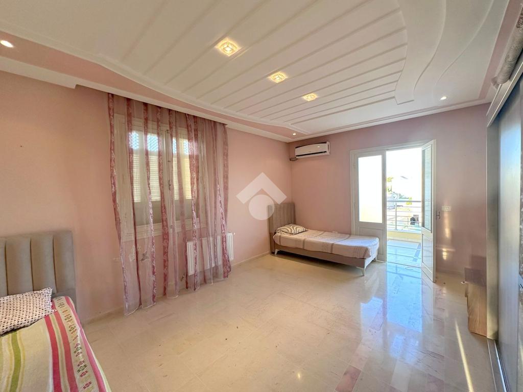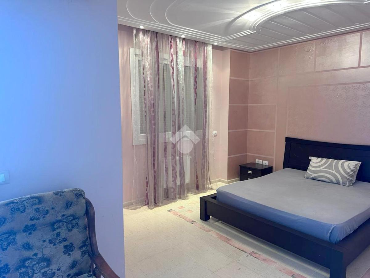 À découvrir : un étage de villa S+3, entièrement meublé, avec espace de parking, situé à seulement 5 minutes à pied de la plage. D’une superficie généreuse, il se compose d’une cuisine spacieuse, indépendante et entièrement équipée, donnant sur un grand séchoir.