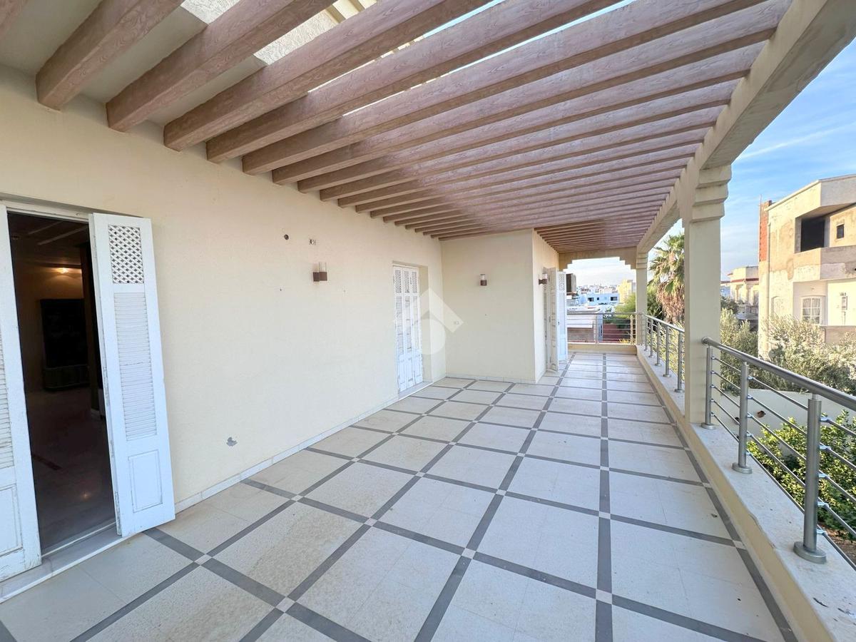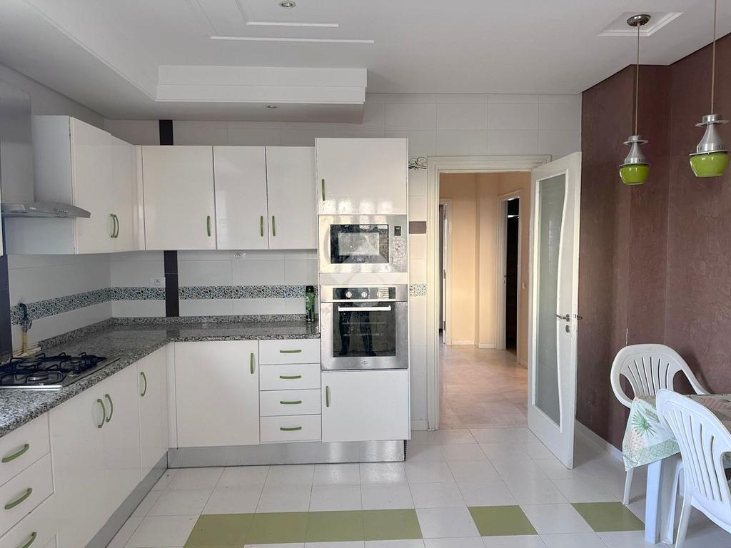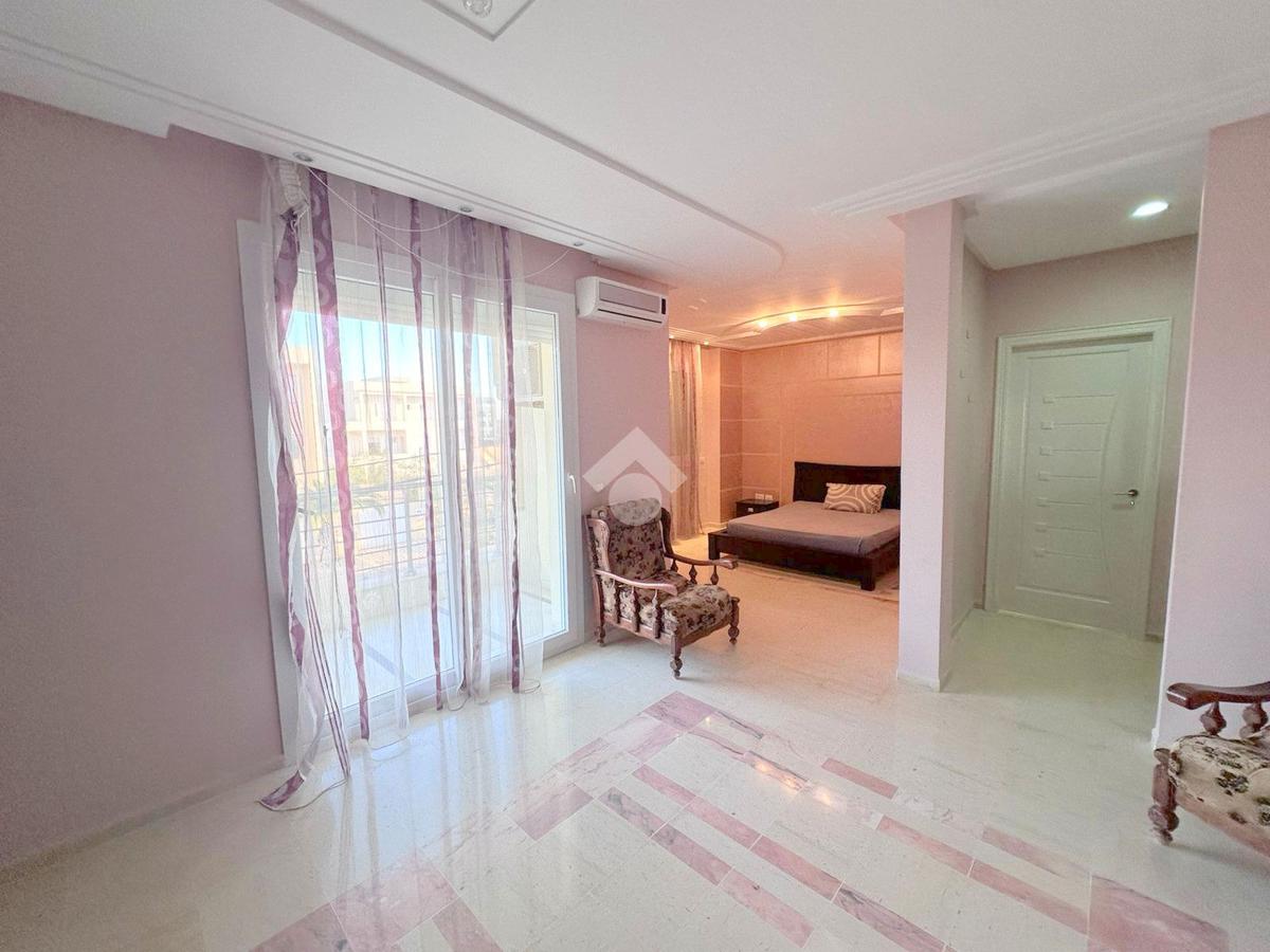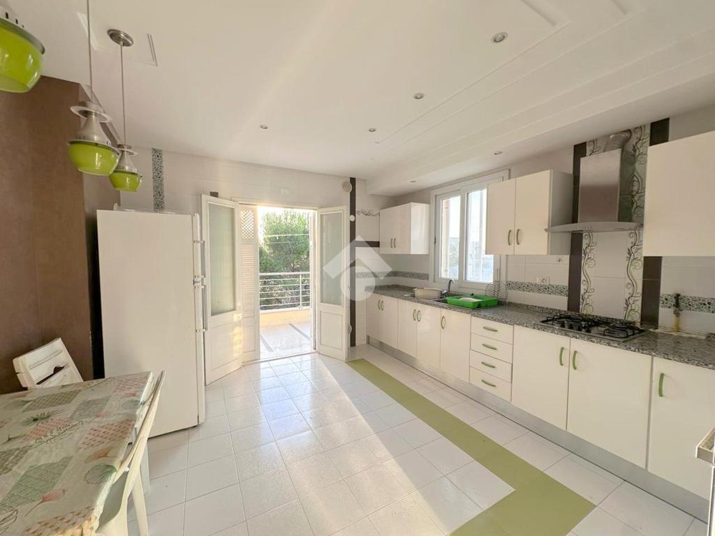 À découvrir : un étage de villa S+3, entièrement meublé, avec espace de parking, situé à seulement 5 minutes à pied de la plage. D’une superficie généreuse, il se compose d’une cuisine spacieuse, indépendante et entièrement équipée, donnant sur un grand séchoir.